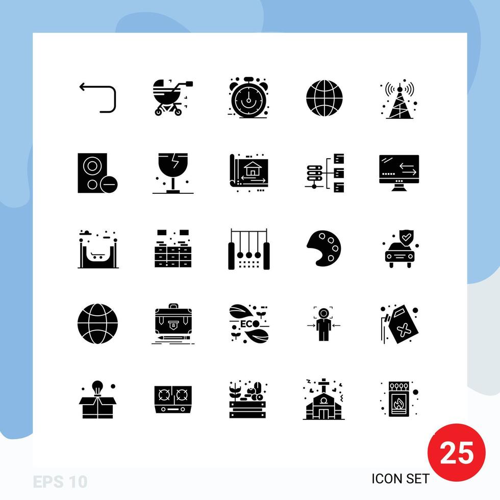 Set of 25 Modern UI Icons Symbols Signs for communication tower iot clock internet of things time Editable Vector Design Elements
