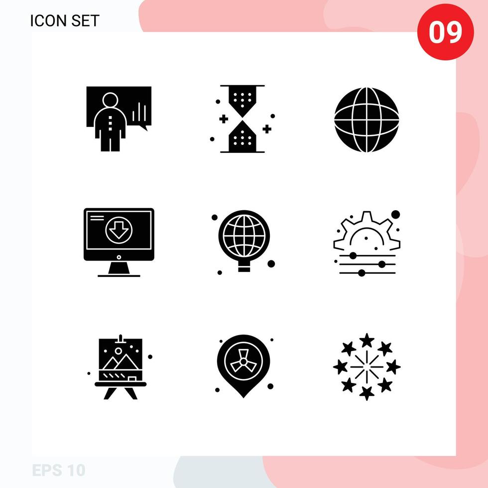 Modern Set of 9 Solid Glyphs Pictograph of download content ui addition internet Editable Vector Design Elements Free Vector