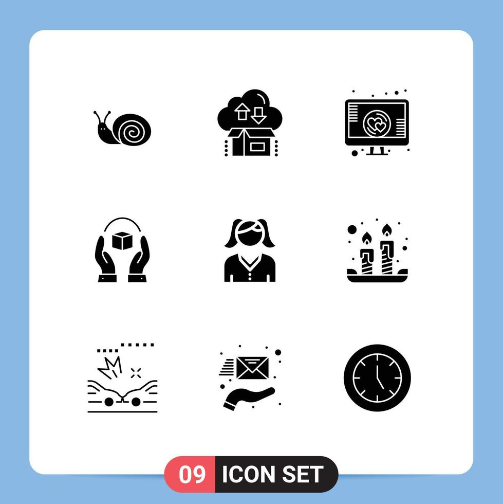 User Interface Pack of 9 Basic Solid Glyphs of responsibility handle arrow caring screen heart Editable Vector Design Elements