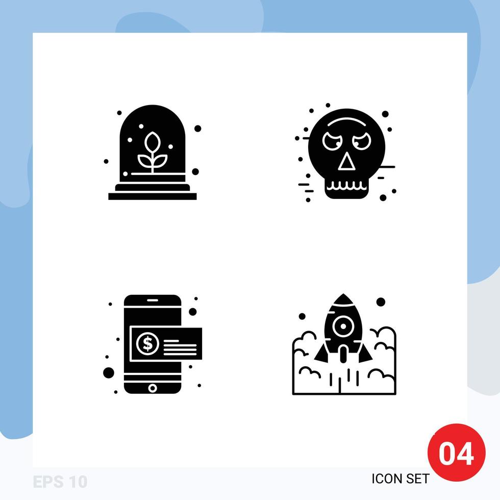 4 User Interface Solid Glyph Pack of modern Signs and Symbols of experimental growth mobile payment avatar halloween launch Editable Vector Design Elements Free Vector