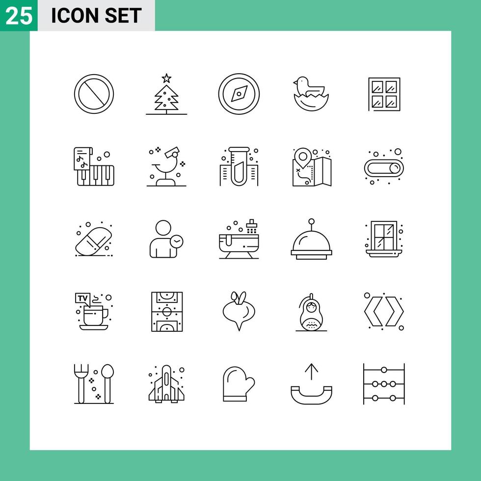 25 Universal Lines Set for Web and Mobile Applications accordion construction compass window egg Editable Vector Design Elements Free Vector