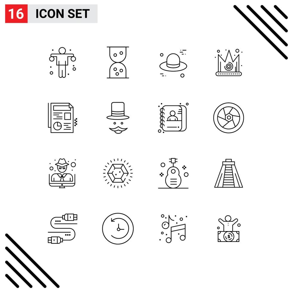 16 User Interface Outline Pack of modern Signs and Symbols of movember moustache best graph document Editable Vector Design Elements Free Vector