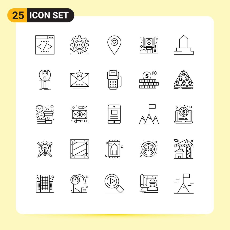 Pack of 25 Modern Lines Signs and Symbols for Web Print Media such as building post heart navigation city Editable Vector Design Elements