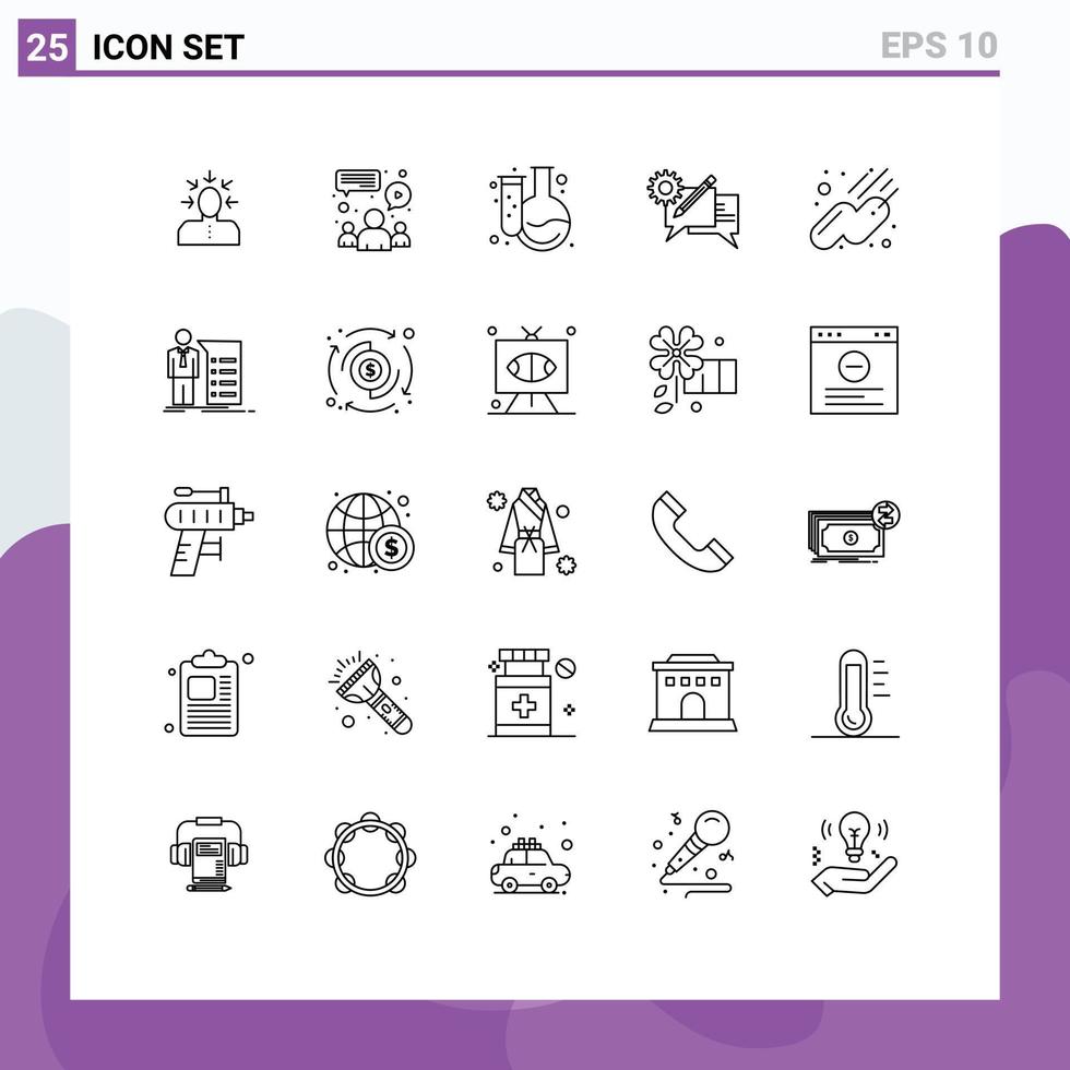 Pack of 25 Modern Lines Signs and Symbols for Web Print Media such as message discussion team communication flask Editable Vector Design Elements