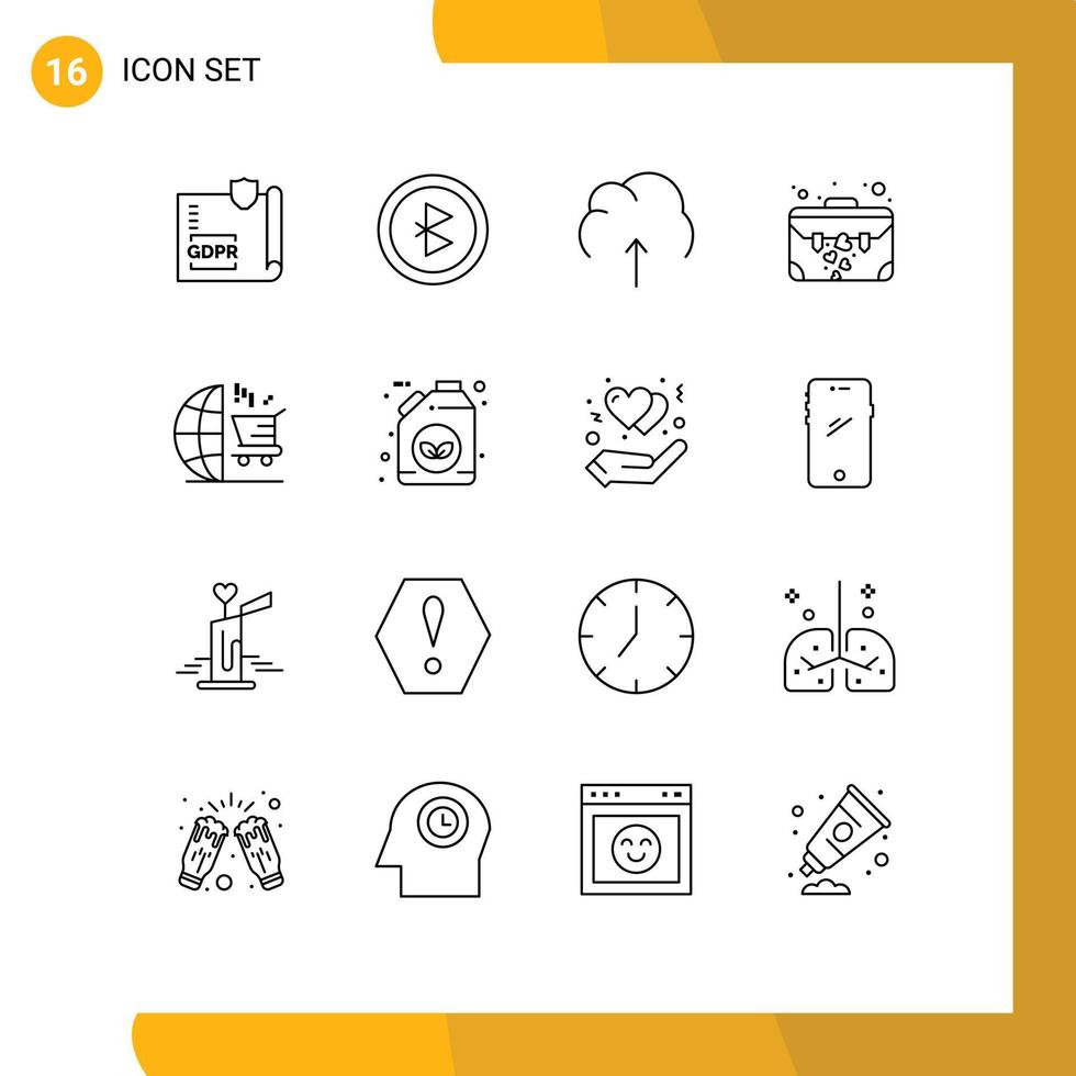 Set of 16 Vector Outlines on Grid for cart case cloud brief storage Editable Vector Design Elements Free Vector