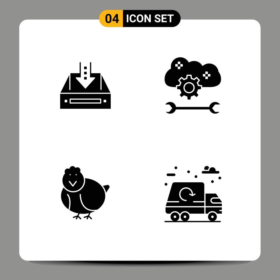 Set of Vector Solid Glyphs on Grid for inbox cloud settings document cloud application service chicken Editable Vector Design Elements Free Vector and Free SVG