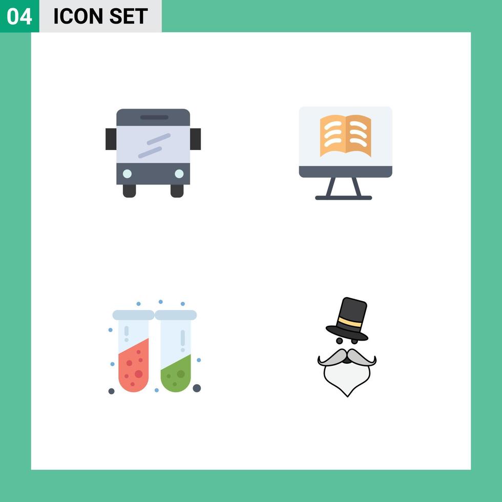 4 Flat Icon concept for Websites Mobile and Apps bus test tubes computer blood hipster Editable Vector Design Elements