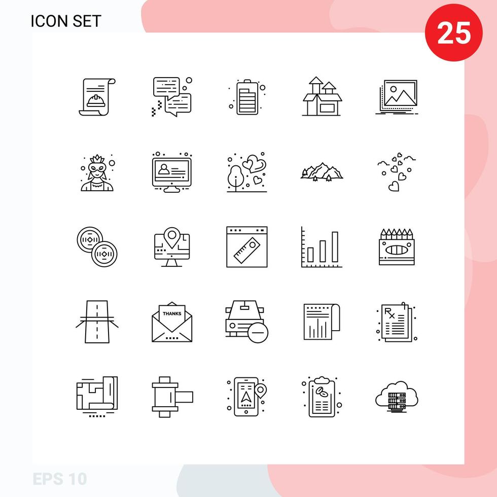 User Interface Pack of 25 Basic Lines of landscape gallery battery product method Editable Vector Design Elements