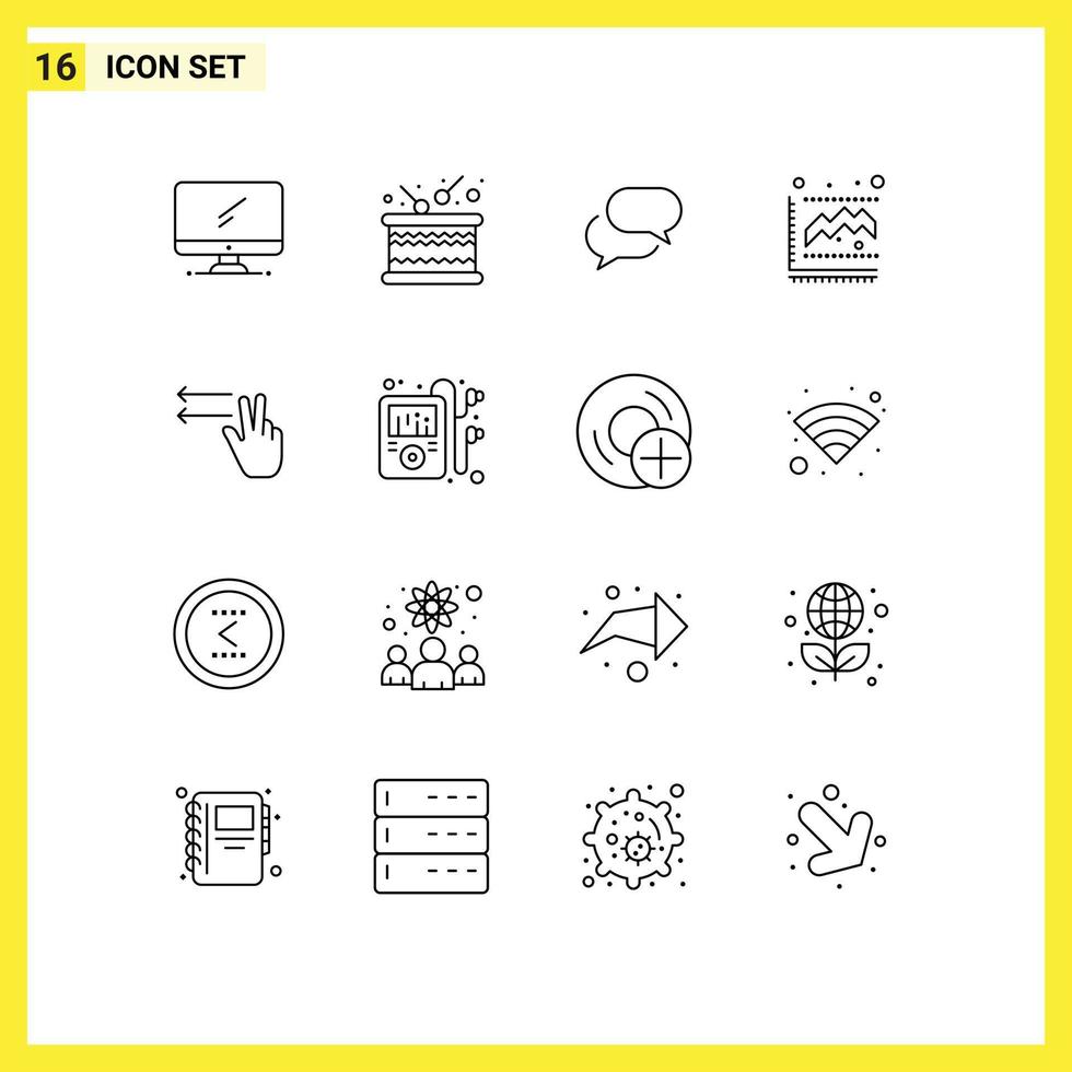 Universal Icon Symbols Group of 16 Modern Outlines of fingers growth sound graph mail Editable Vector Design Elements