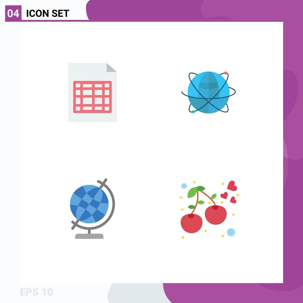 Group of 4 Flat Icons Signs and Symbols for document world globe global geography Editable Vector Design Elements