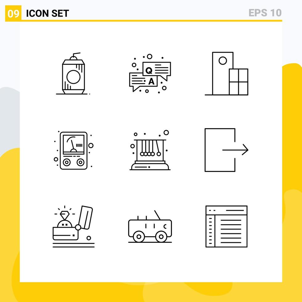 Pictogram Set of 9 Simple Outlines of pendulum voltmeter architecture meter structure Editable Vector Design Elements Free Vector