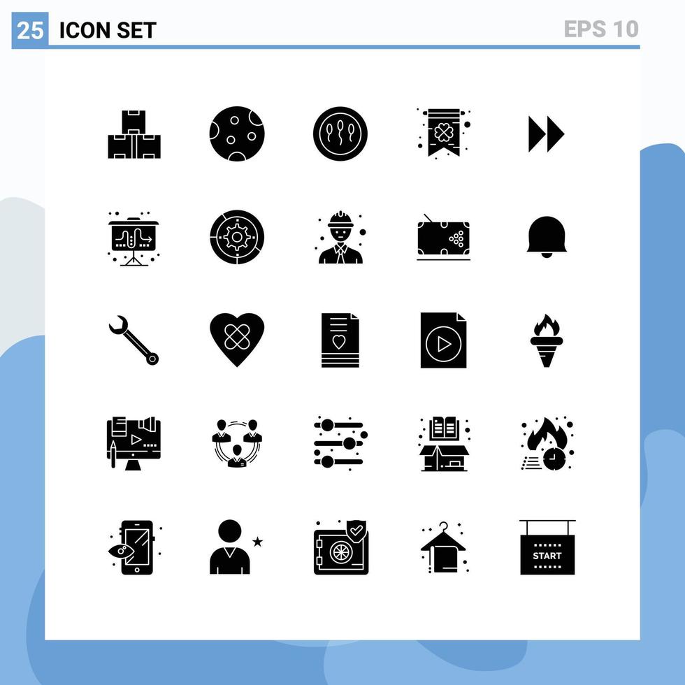25 User Interface Solid Glyph Pack of modern Signs and Symbols of forward greeting card weather clover sperm Editable Vector Design Elements