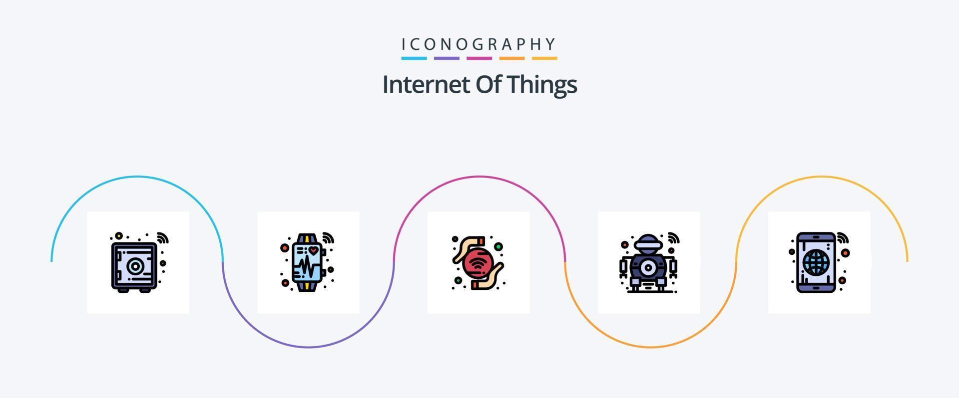 Internet Of Things Line Filled Flat 5 Icon Pack Including globe. tech. technology. smart. robot vector