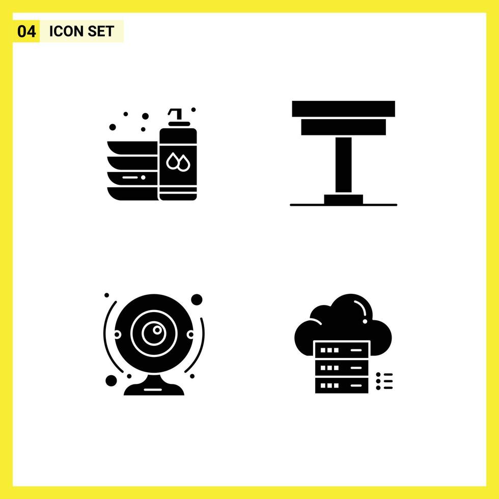 Pack of 4 Modern Solid Glyphs Signs and Symbols for Web Print Media such as bottle table liquid desk camera Editable Vector Design Elements