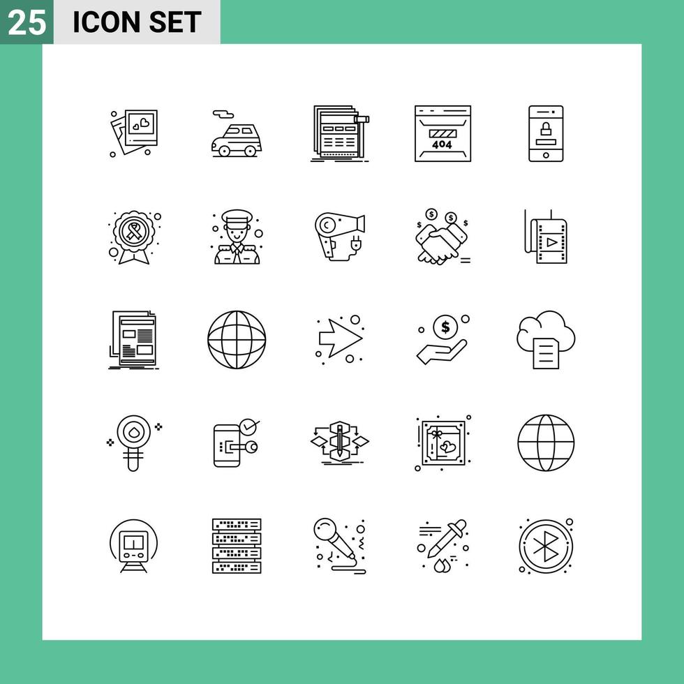 Set of 25 Commercial Lines pack for site error internet development wireframe Editable Vector Design Elements Free Vector