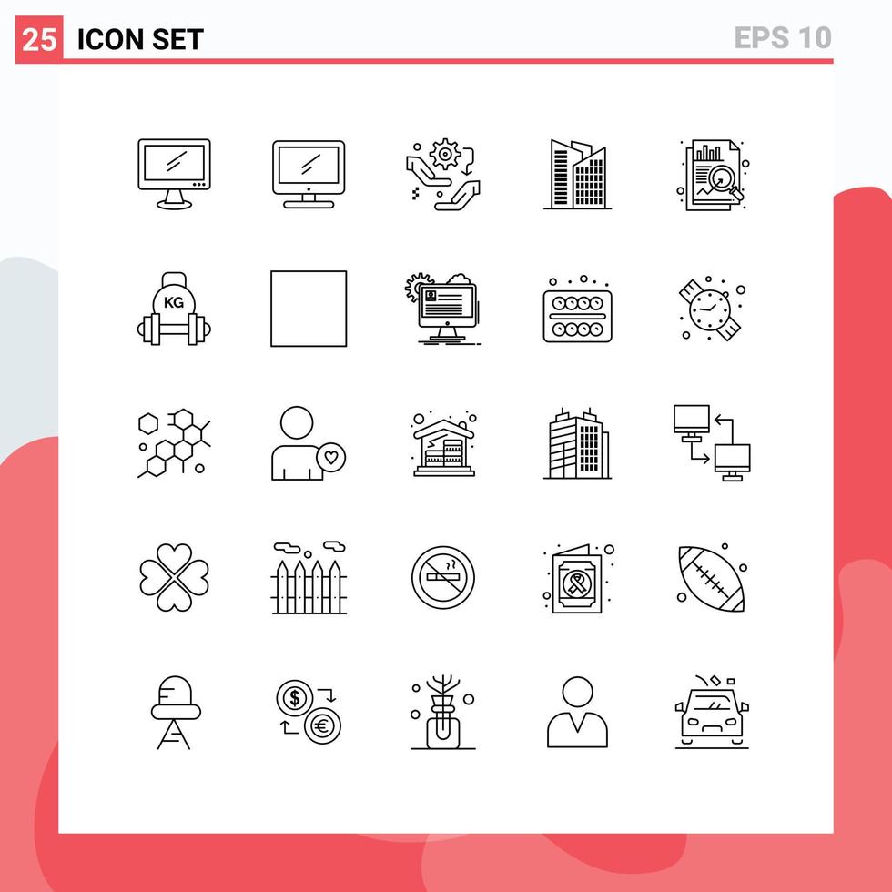 25 Thematic Vector Lines and Editable Symbols of dumbbell data configuration chart skyscraper Editable Vector Design Elements