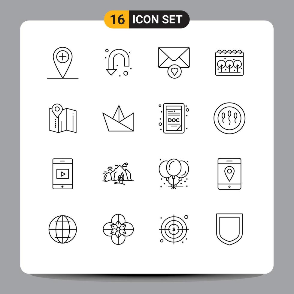 User Interface Pack of 16 Basic Outlines of hobby pin message map green Editable Vector Design Elements