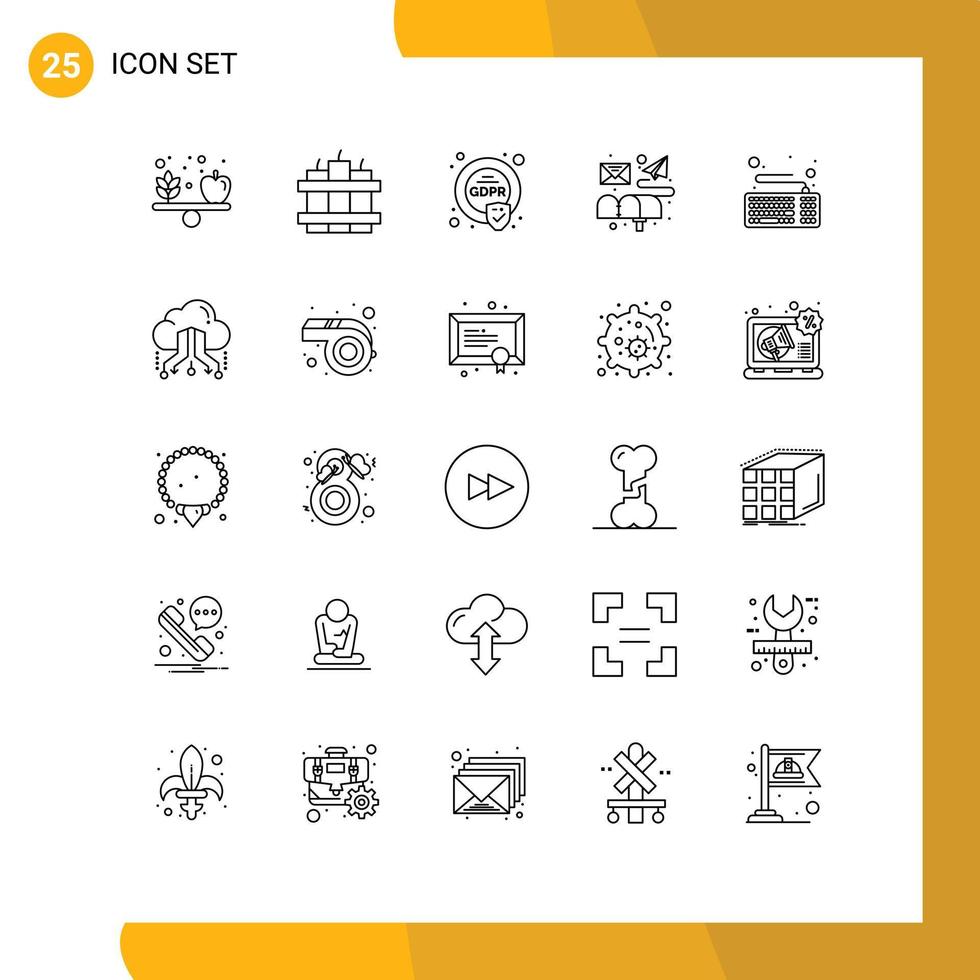 Group of 25 Lines Signs and Symbols for hardware computer compliance mail email Editable Vector Design Elements