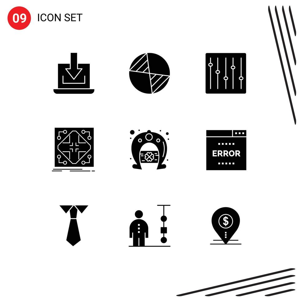 Set of 9 Vector Solid Glyphs on Grid for festival grid devices matrix infrastructure Editable Vector Design Elements