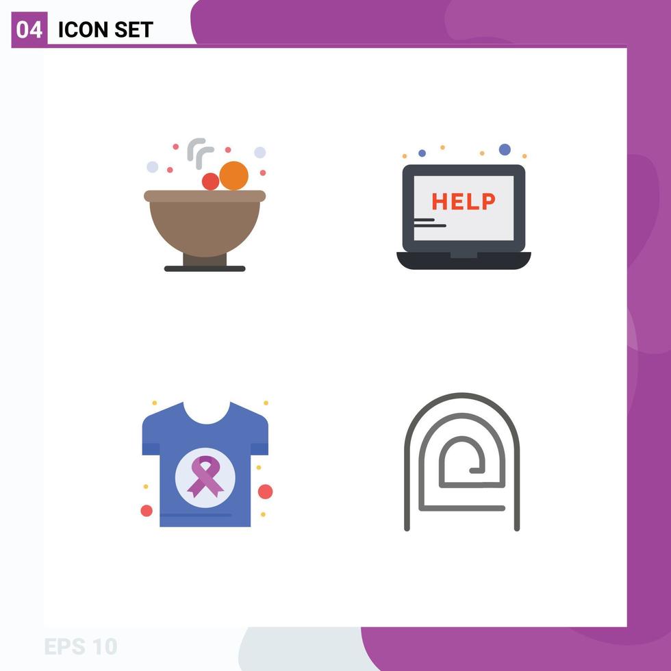 4 Universal Flat Icons Set for Web and Mobile Applications bowl day help support shirt Editable Vector Design Elements