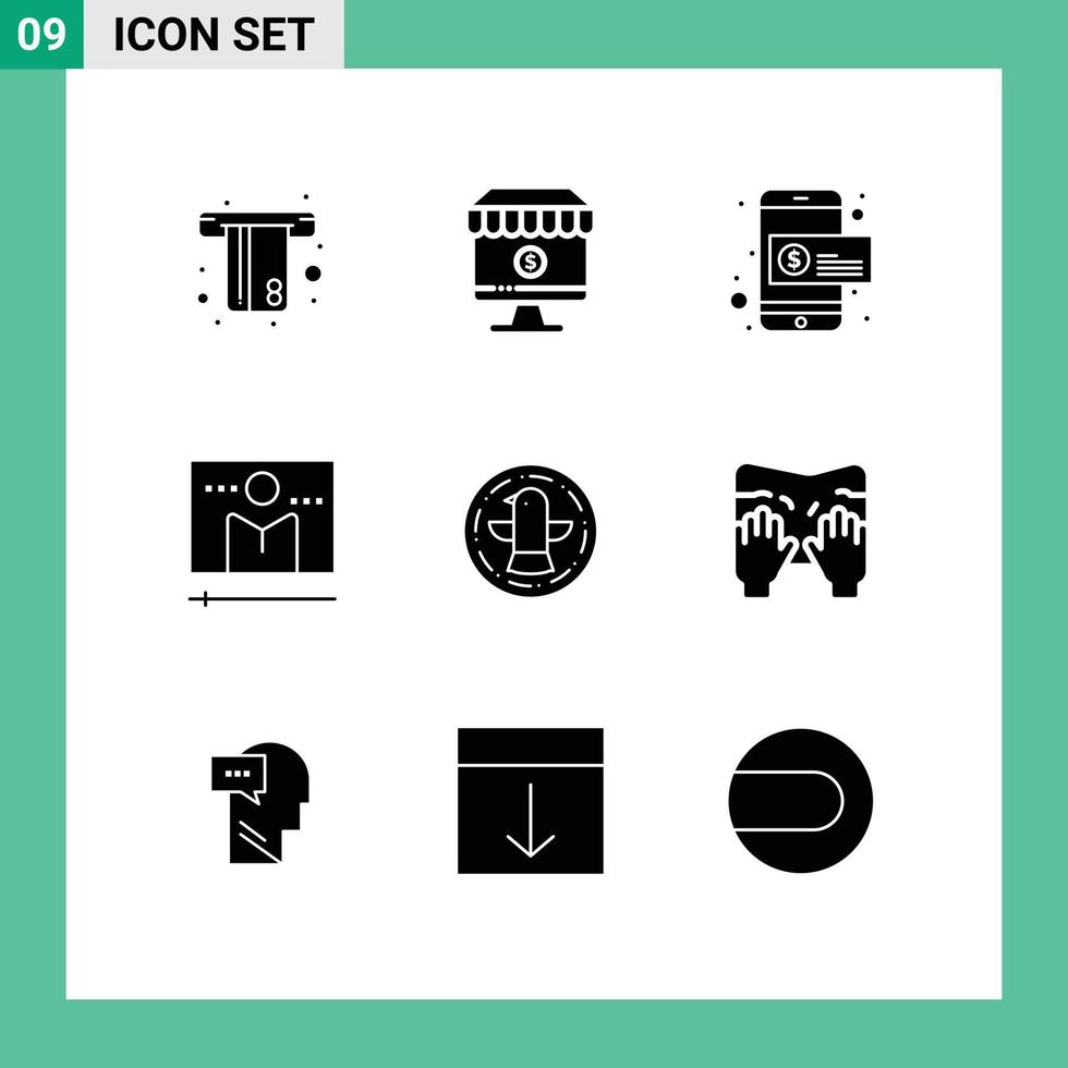 Set of 9 Vector Solid Glyphs on Grid for player media commerce display money Editable Vector Design Elements