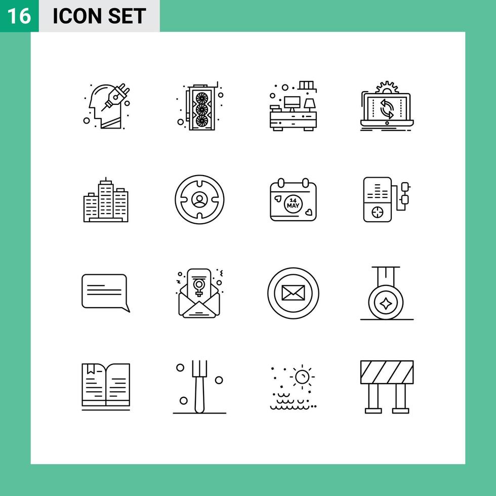 Outline Pack of 16 Universal Symbols of building reporting computer analysis data Editable Vector Design Elements