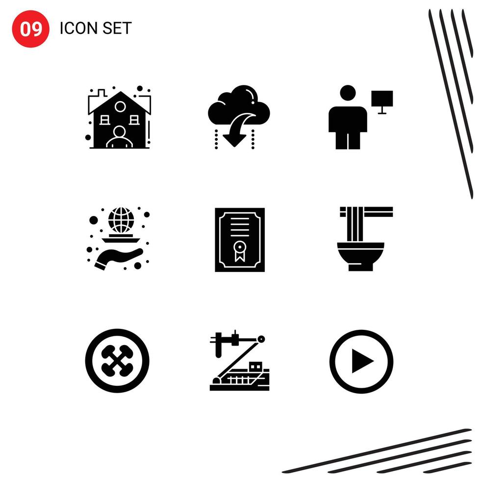 9 Universal Solid Glyphs Set for Web and Mobile Applications marketing grid data globe human Editable Vector Design Elements