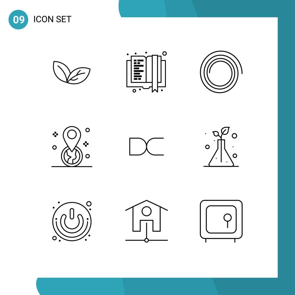 Mobile Interface Outline Set of 9 Pictograms of crypto currency coin shape decent location Editable Vector Design Elements