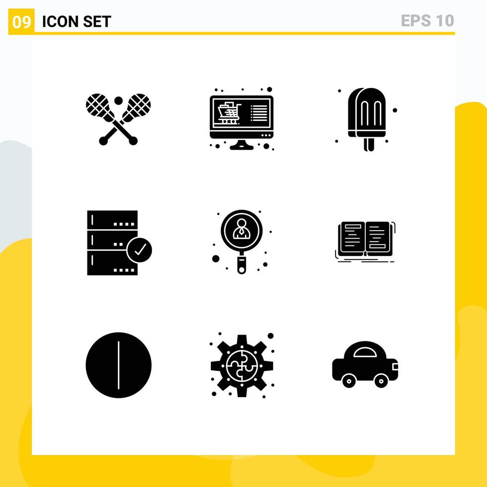 Group of 9 Solid Glyphs Signs and Symbols for data base list backup meal Editable Vector Design Elements