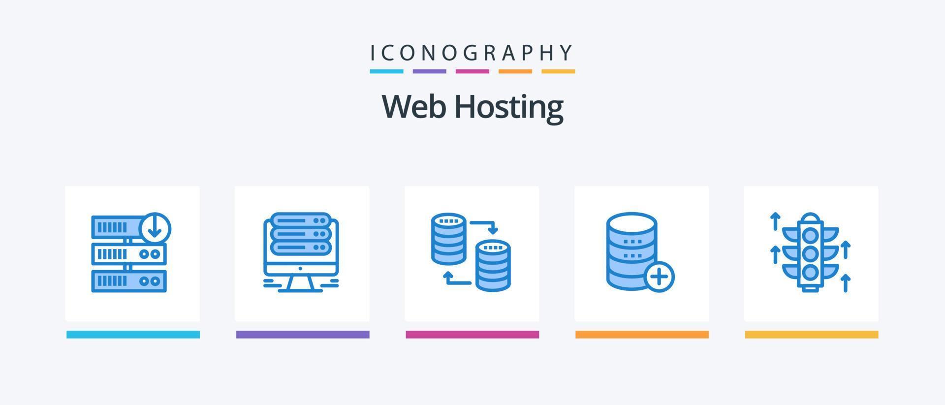 Web Hosting Blue 5 Icon Pack Including add. sal. database. server. share. Creative Icons Design vector