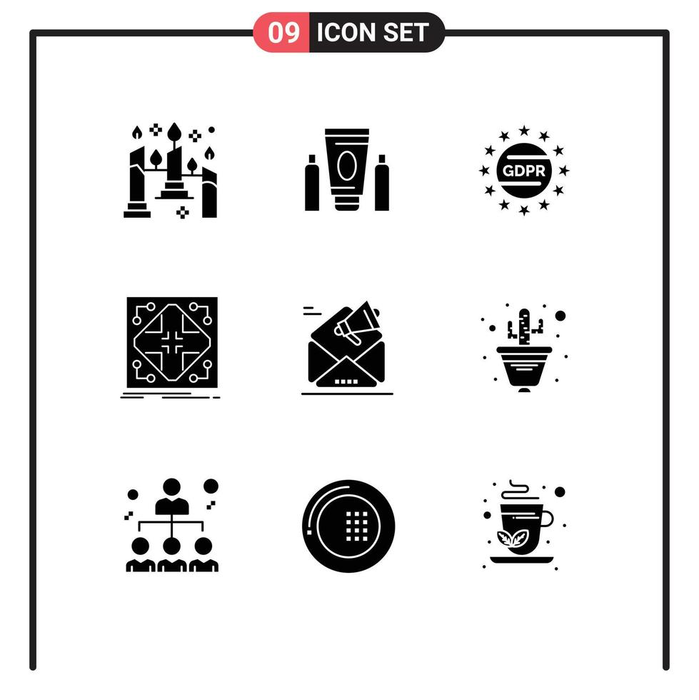Pictogram Set of 9 Simple Solid Glyphs of advertising matrix gdpr network data Editable Vector Design Elements