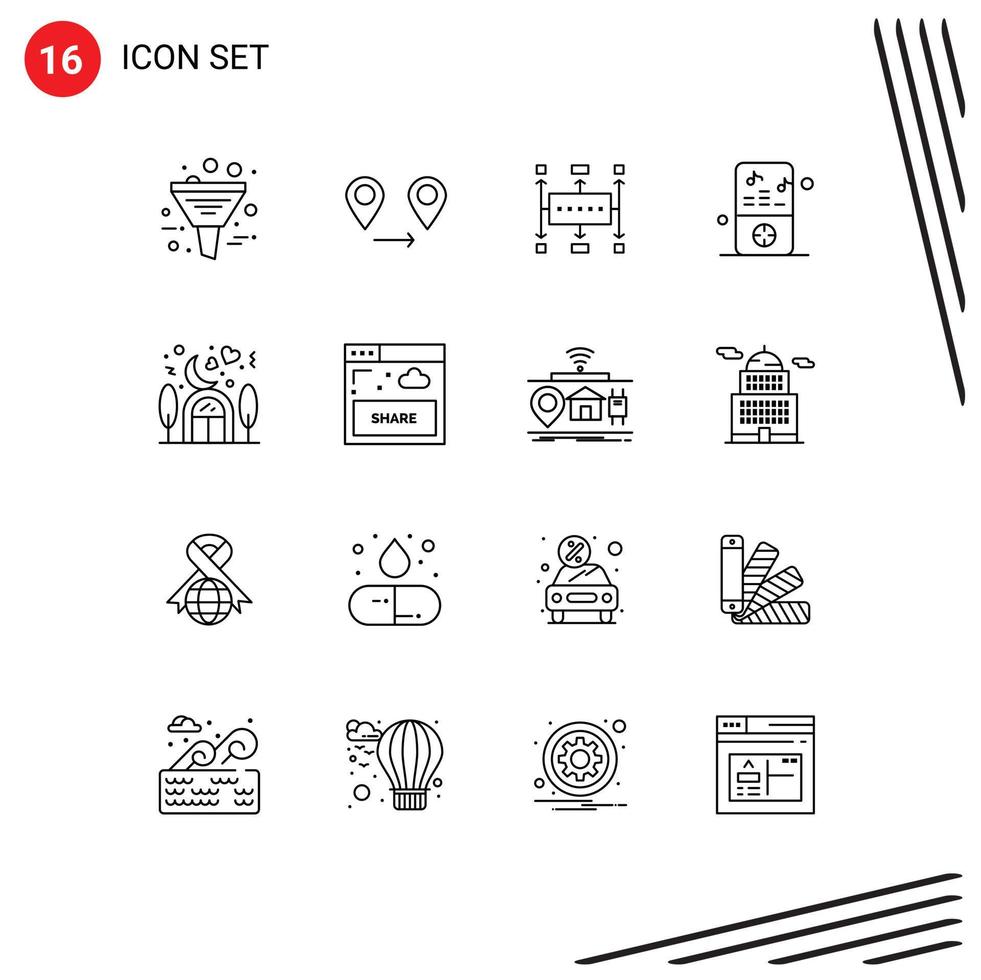 Mobile Interface Outline Set of 16 Pictograms of home music player workflow music planning Editable Vector Design Elements