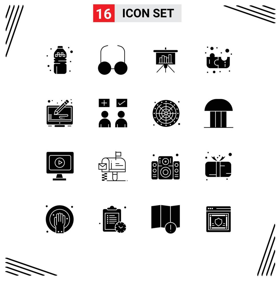 Pictogram Set of 16 Simple Solid Glyphs of answers display powerpoint copyright strategy Editable Vector Design Elements Free Vector
