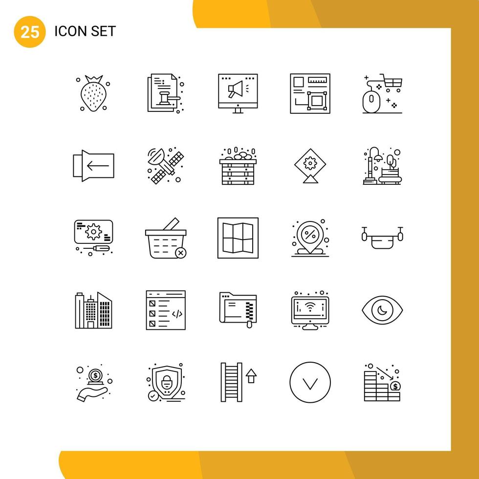 Mobile Interface Line Set of 25 Pictograms of web design legal browser online Editable Vector Design Elements Free Vector