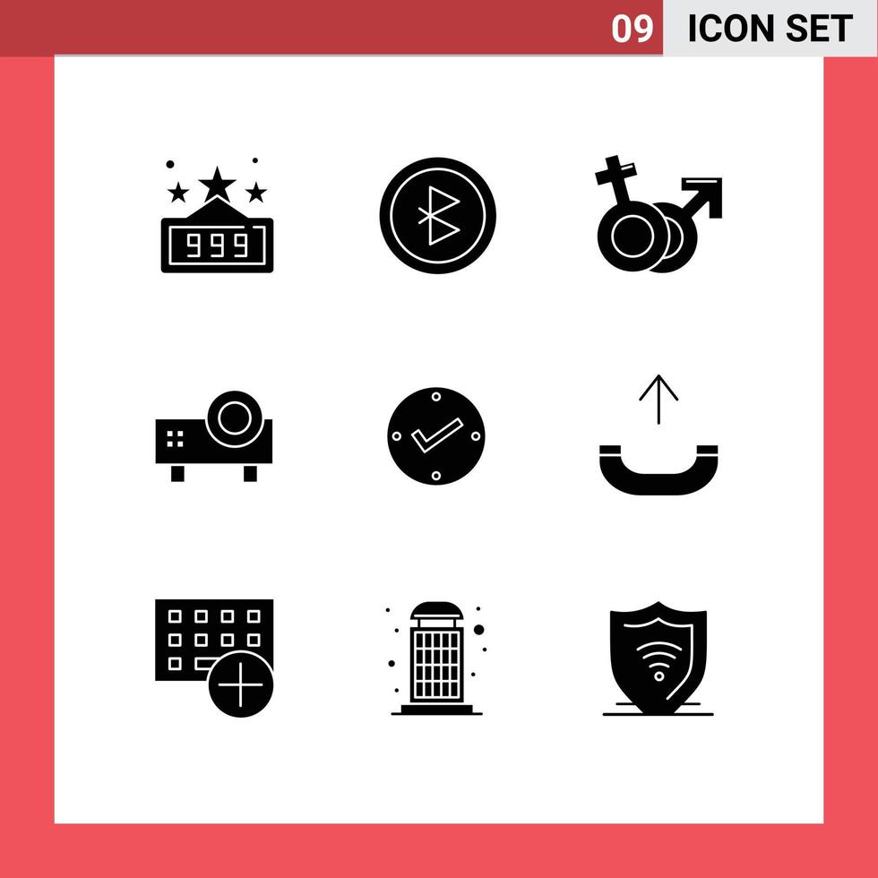 Group of 9 Solid Glyphs Signs and Symbols for tick video projector mars slide projector powerpoint presentation Editable Vector Design Elements