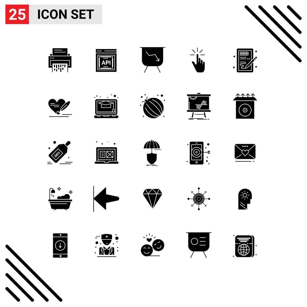 25 Universal Solid Glyphs Set for Web and Mobile Applications gestures finger api concept click finance Editable Vector Design Elements