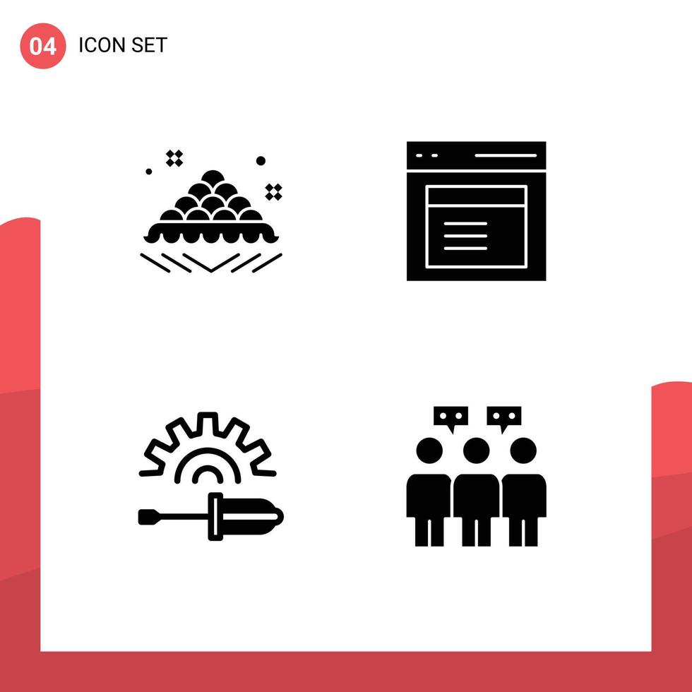 Set of 4 Vector Solid Glyphs on Grid for sweet window open interface driver Editable Vector Design Elements Free Vector
