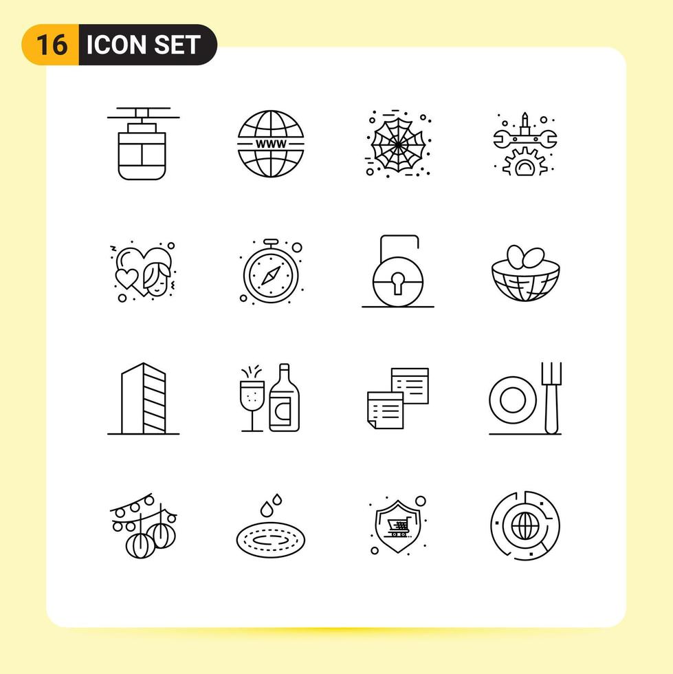 Set of 16 Vector Outlines on Grid for event heart web repair gear Editable Vector Design Elements Free Vector and Free SVG