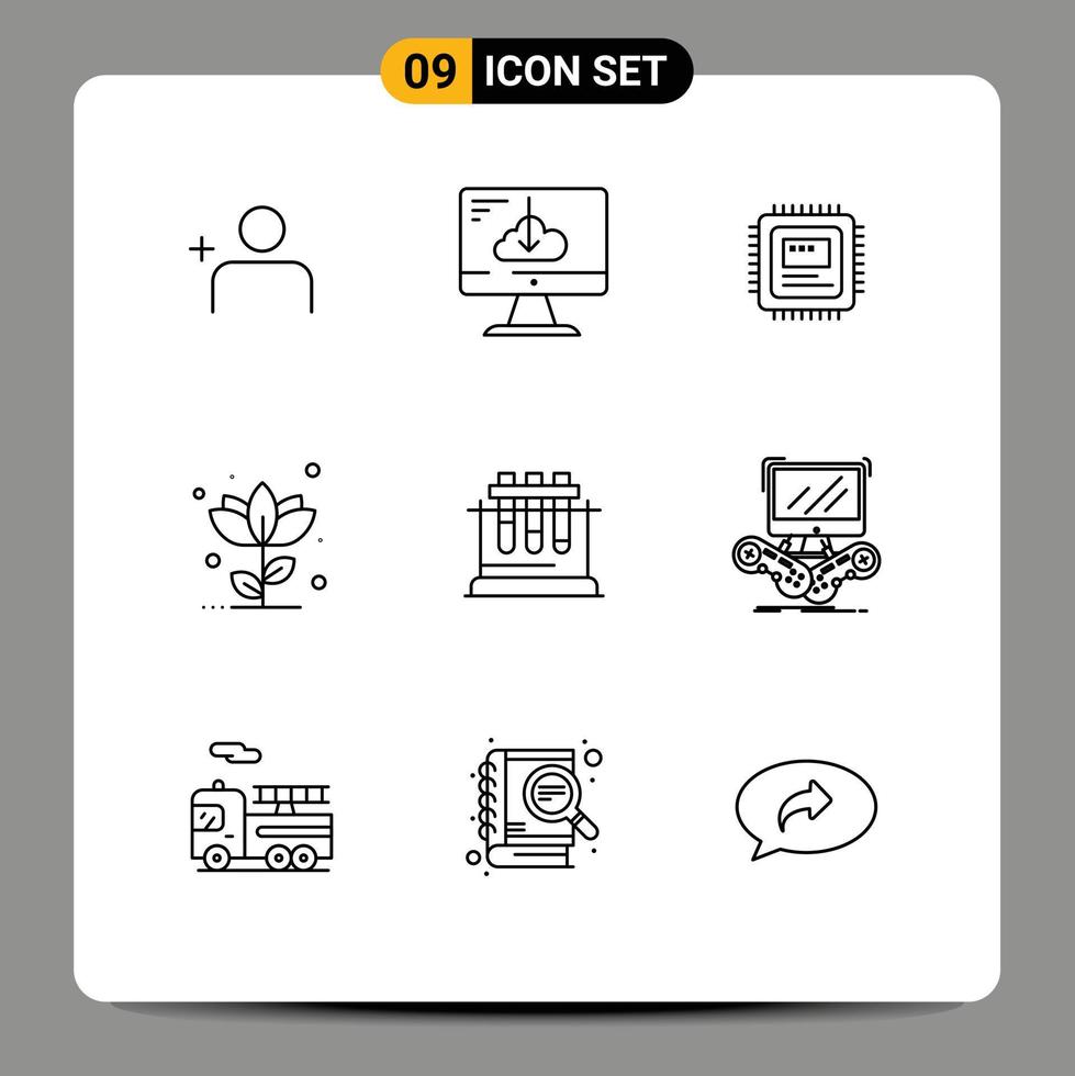 9 Thematic Vector Outlines and Editable Symbols of lab nature cpu flower flora Editable Vector Design Elements
