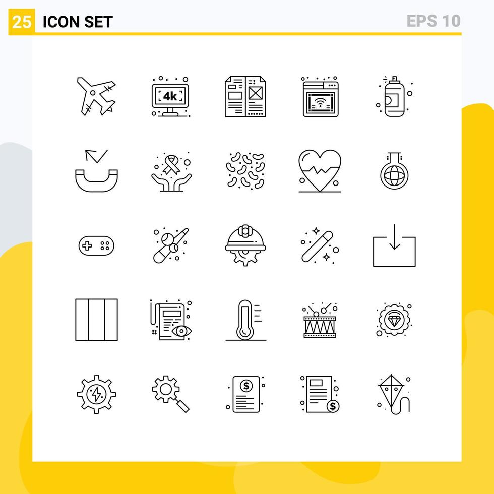 25 Universal Lines Set for Web and Mobile Applications art wifi design web internet Editable Vector Design Elements Free Vector
