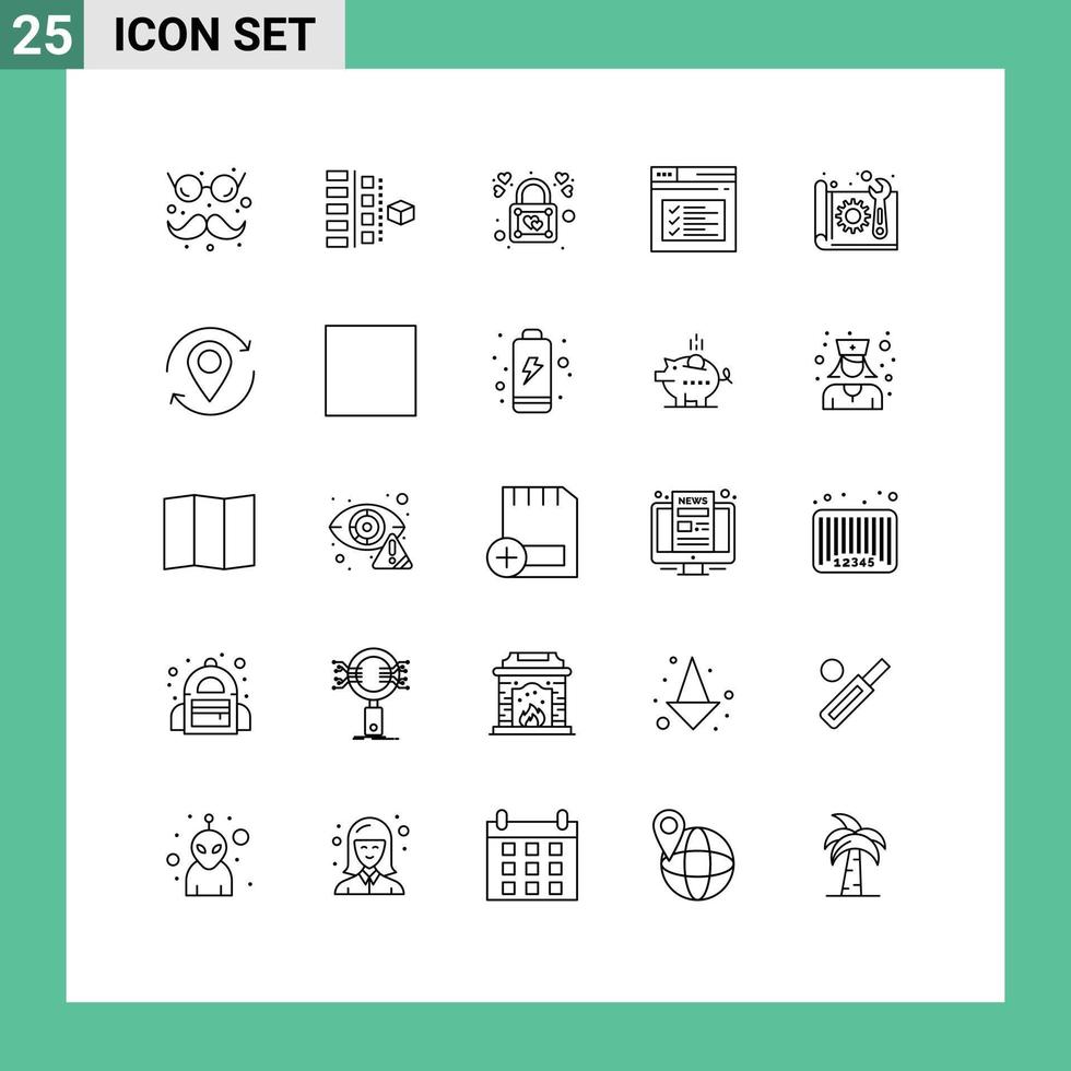 Mobile Interface Line Set of 25 Pictograms of text web product page padlock Editable Vector Design Elements