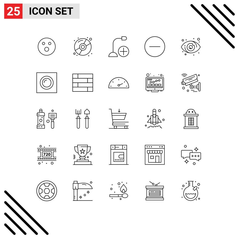 25 User Interface Line Pack of modern Signs and Symbols of eye media player add media hardware Editable Vector Design Elements