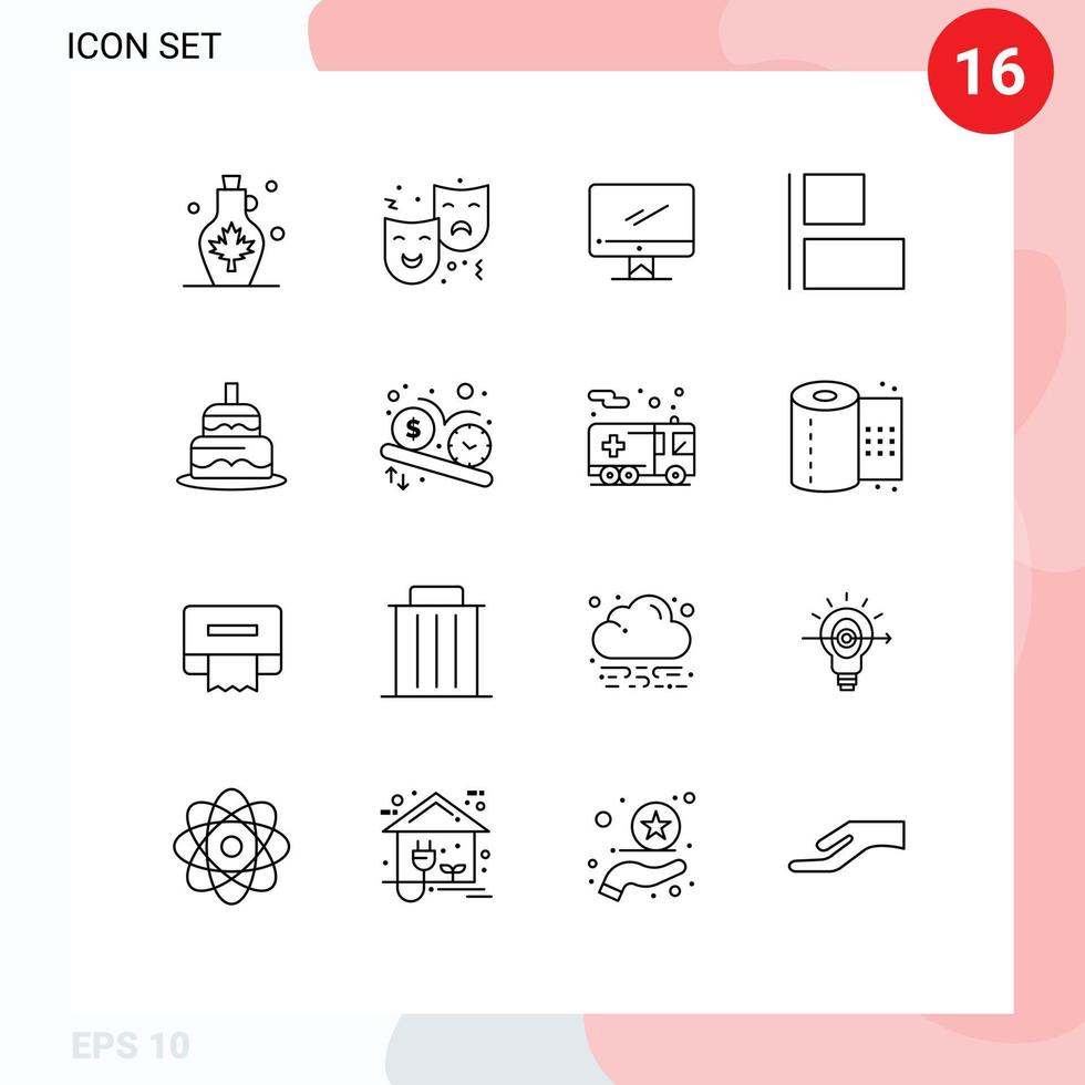 Pack of 16 Modern Outlines Signs and Symbols for Web Print Media such as left align circus pc device Editable Vector Design Elements