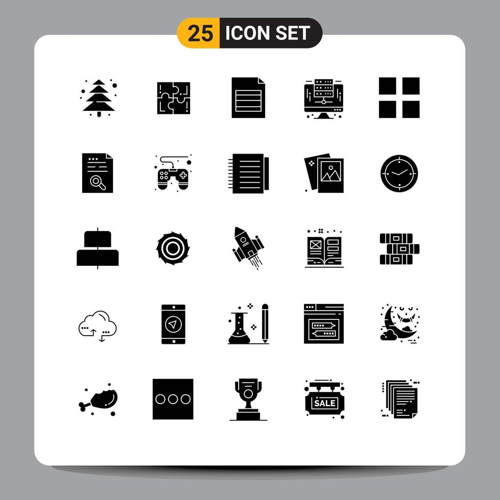 Pack of 25 Modern Solid Glyphs Signs and Symbols for Web Print Media such as thumbnails grid document server digital Editable Vector Design Elements