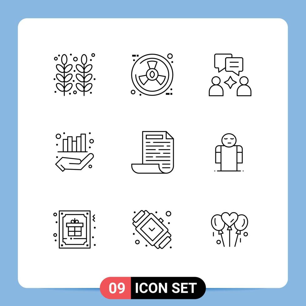 Editable Vector Line Pack of 9 Simple Outlines of design hand nature graph business Editable Vector Design Elements