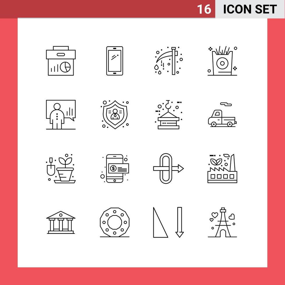 Set of 16 Vector Outlines on Grid for kid fries android scary halloween Editable Vector Design Elements Free Vector