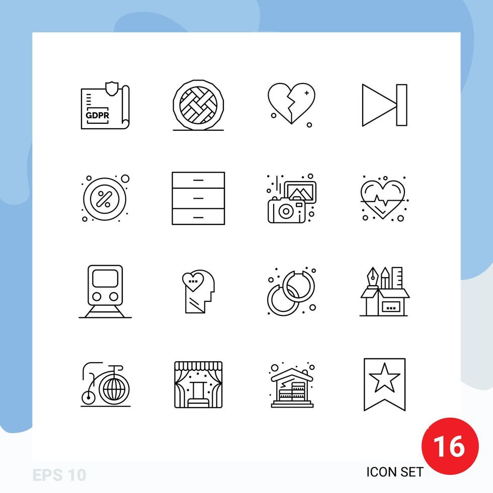 User Interface Pack of 16 Basic Outlines of next forward pie end heart Editable Vector Design Elements