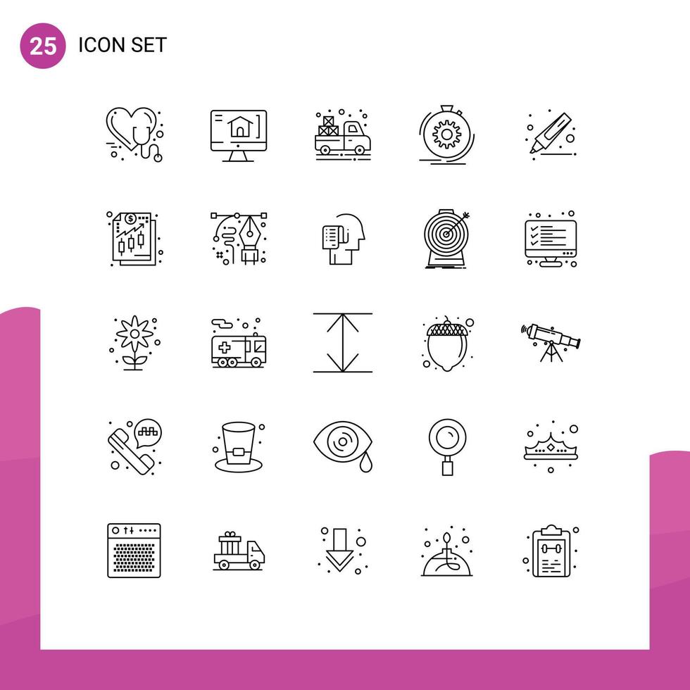 Pack of 25 creative Lines of drawing process carrier performance action Editable Vector Design Elements
