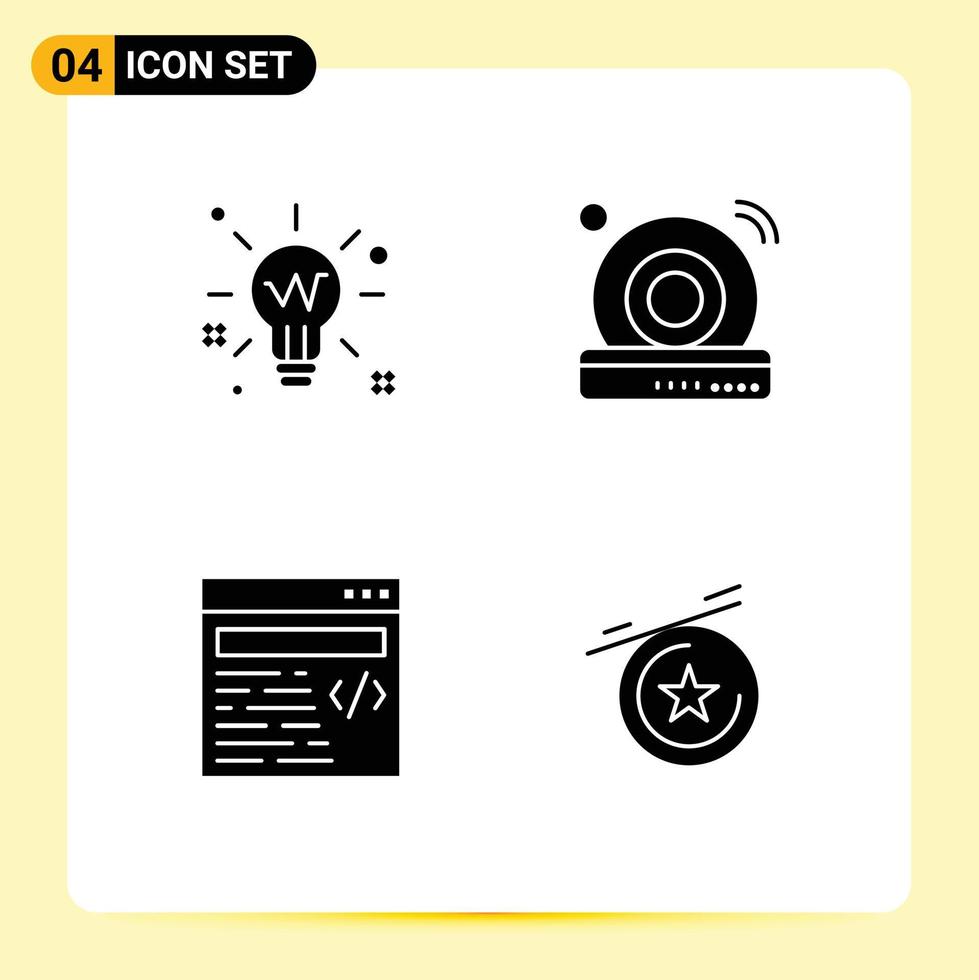 Solid Glyph Pack of 4 Universal Symbols of bulb web solution dvd text Editable Vector Design Elements