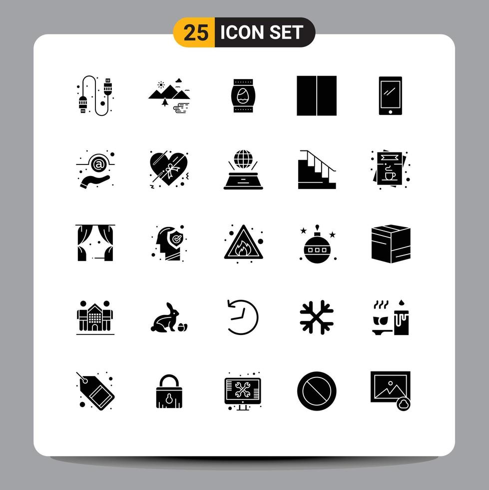 Group of 25 Modern Solid Glyphs Set for android smart phone egg phone grid Editable Vector Design Elements